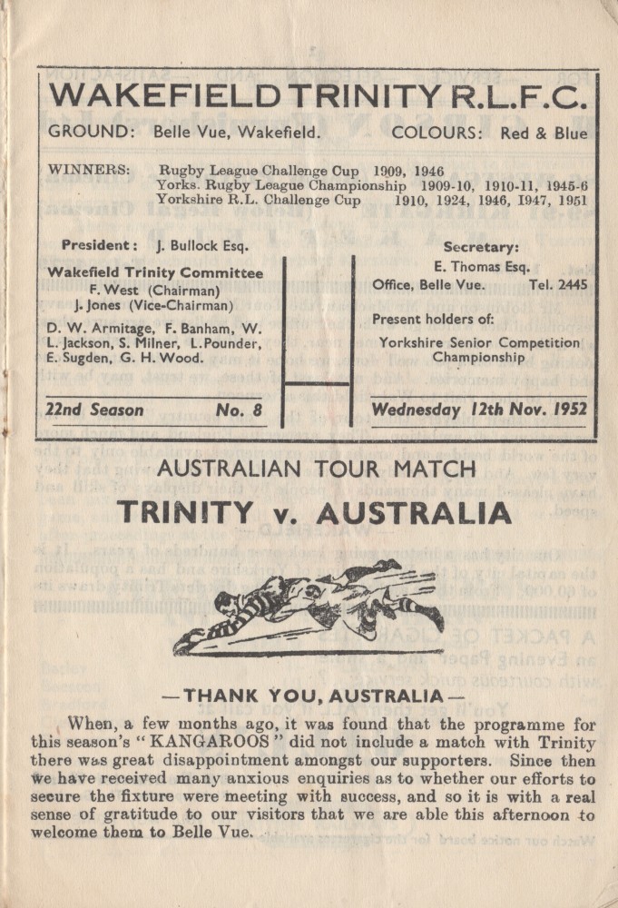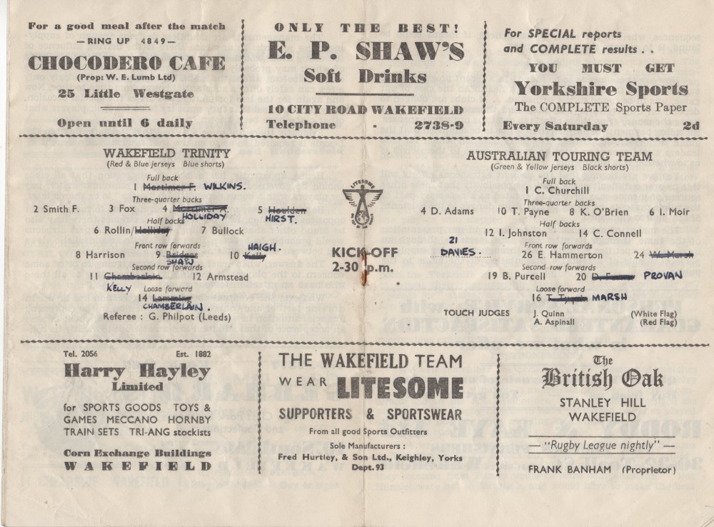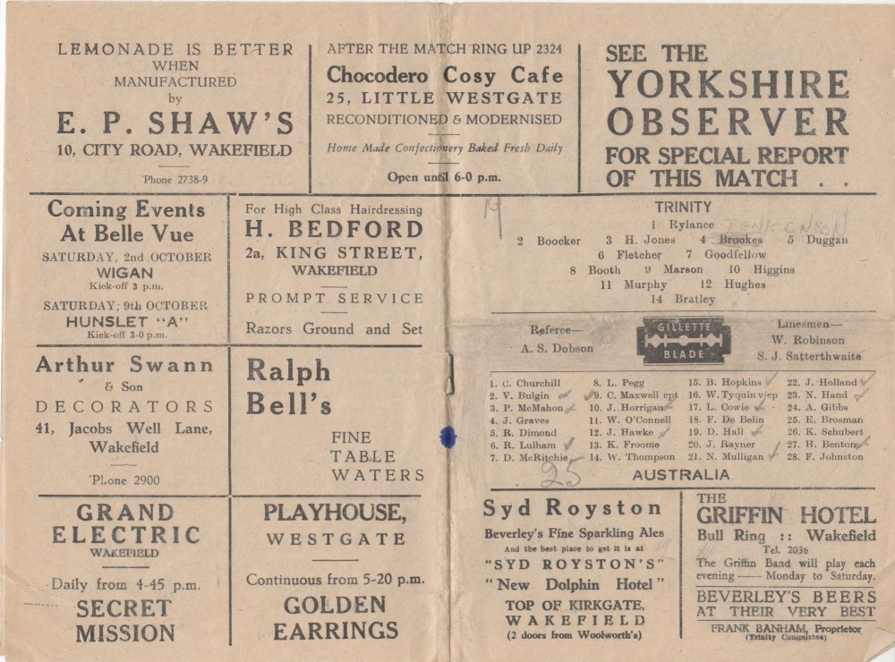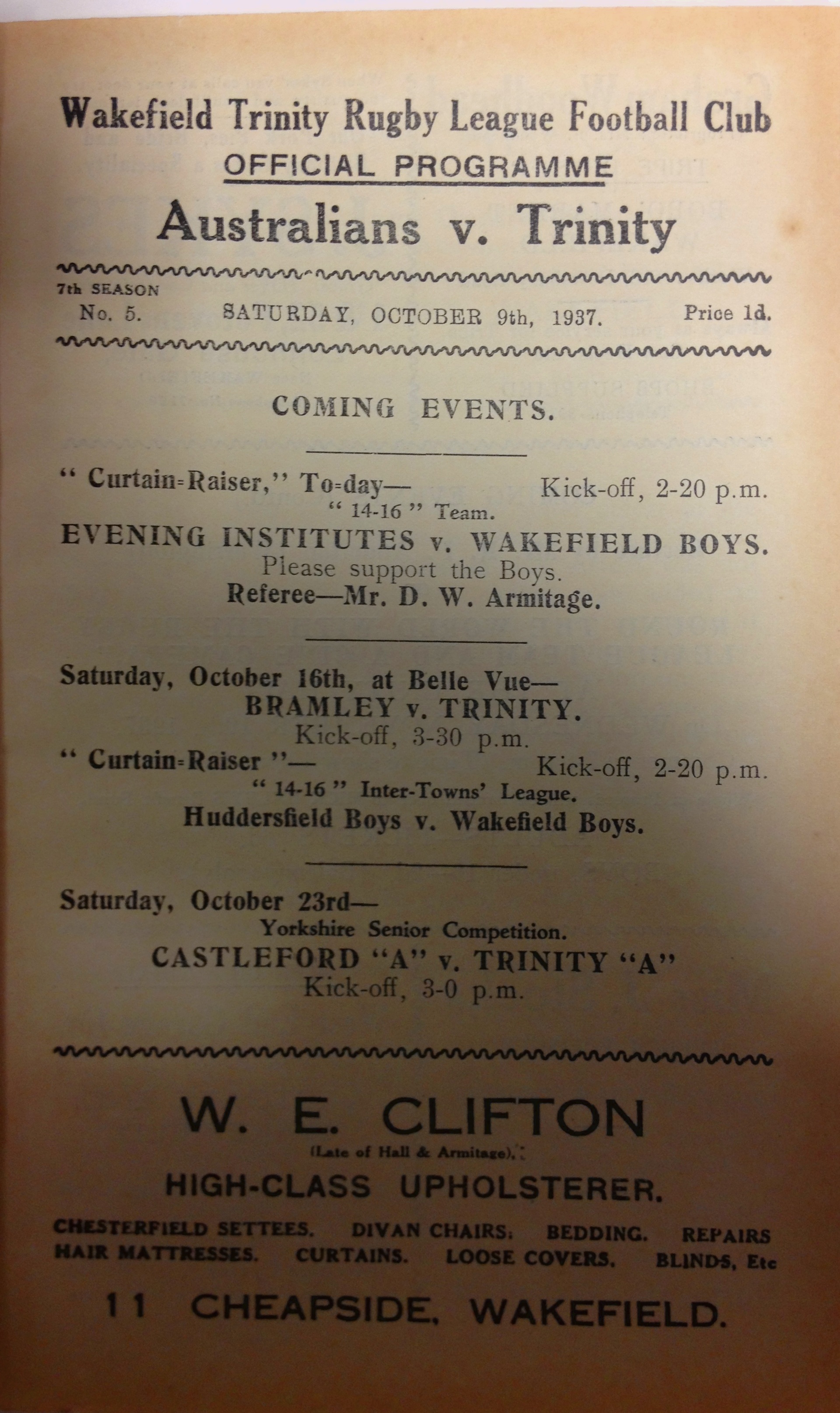 1937 v Australia (Menu Card) Dinner Menu Cover, Strafford Arms, Wakefield View Image >